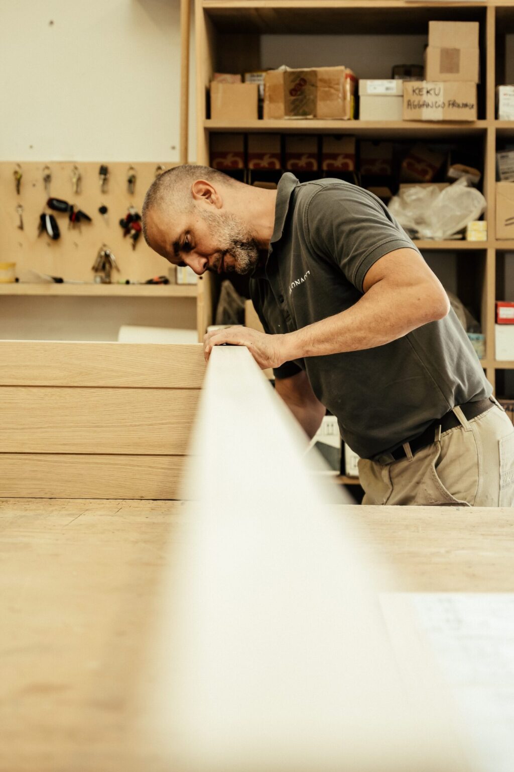 We are a modern carpentry workshop, specialized in tailor-made projects of the highest standard. Working with expertise, discipline and respect for wood is what we truly are. It all starts with our hands.