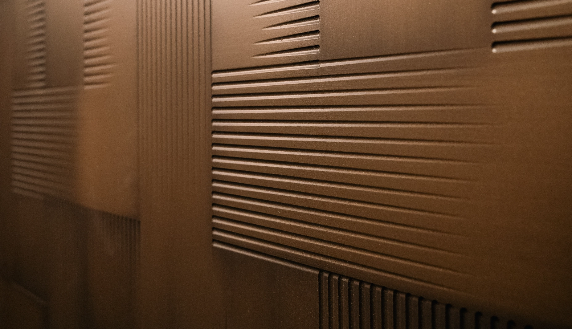In this panelling, square and rigorous lines intersect like the pulsating arteries of an urban centre teeming with life. Each intersection seems to evoke a passage, a connection, an unexpected possibility: a three-dimensional map that does not merely decorate, but suggests an imaginary journey into the city of the future. The geometries, drawing rhythm and depth, become living architecture, capable of generating movement and intensity even in a static space. Metropolis is an encounter between memory and avant-garde, between the evocative power of cinema and the living material of wood: an invitation to experience space as if it were part of a great work in continuous transformation. The texture, the result of skilful brushing and finishing of the wood, enhances the natural material and transforms it into an architectural surface. No longer just a covering, but a real backdrop capable of giving personality, presence and charm to any environment. Available in MDF or solid wood.