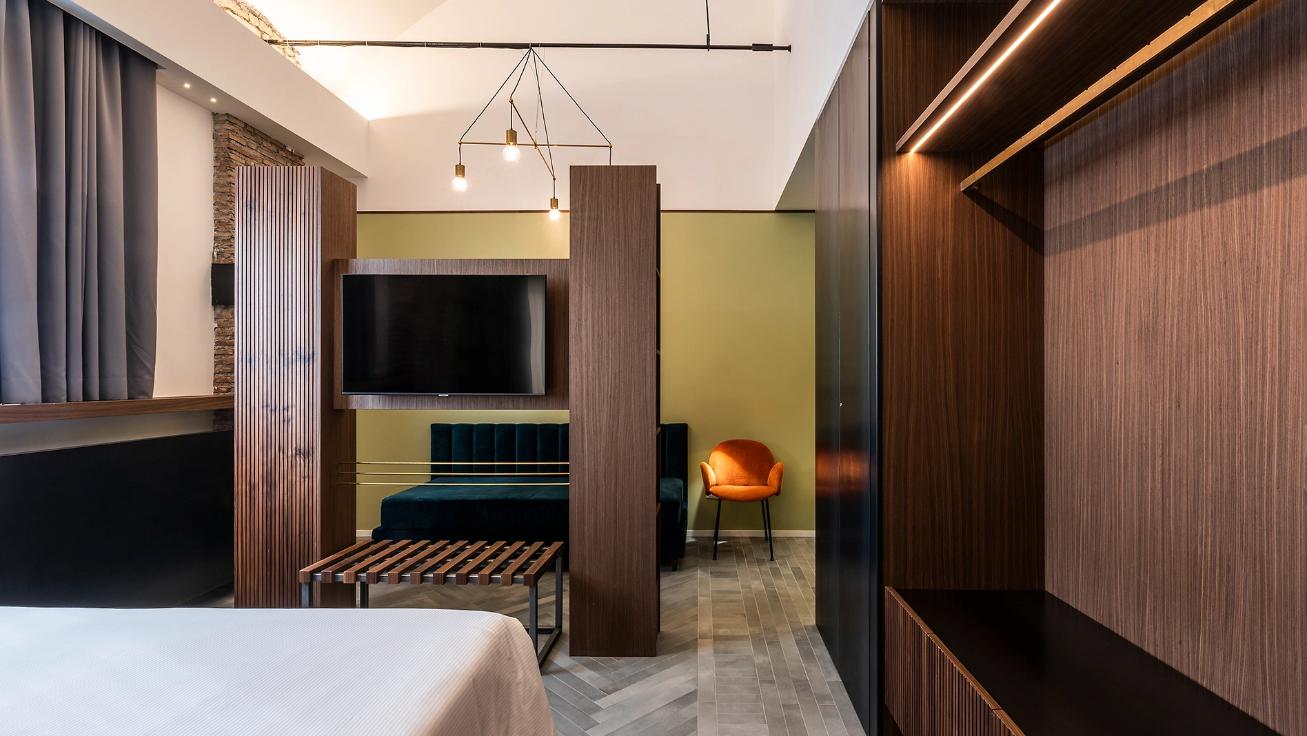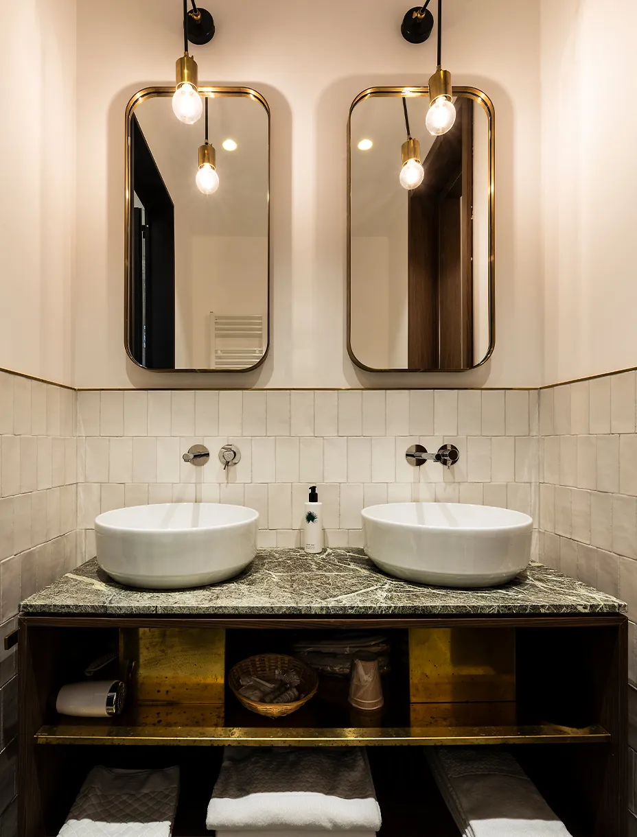 Il progetto, sviluppato in collaborazione con la proprietà e con lo Studio Stabili, si distingue per un’estetica essenziale e raffinata, capace di coniugare rigore e poesia. Linee pulite e dettagli sartoriali riflettono l’anima autentica di Horti 14: un’ospitalità di lusso elegante, radicata nella tradizione ma aperta al contemporaneo.