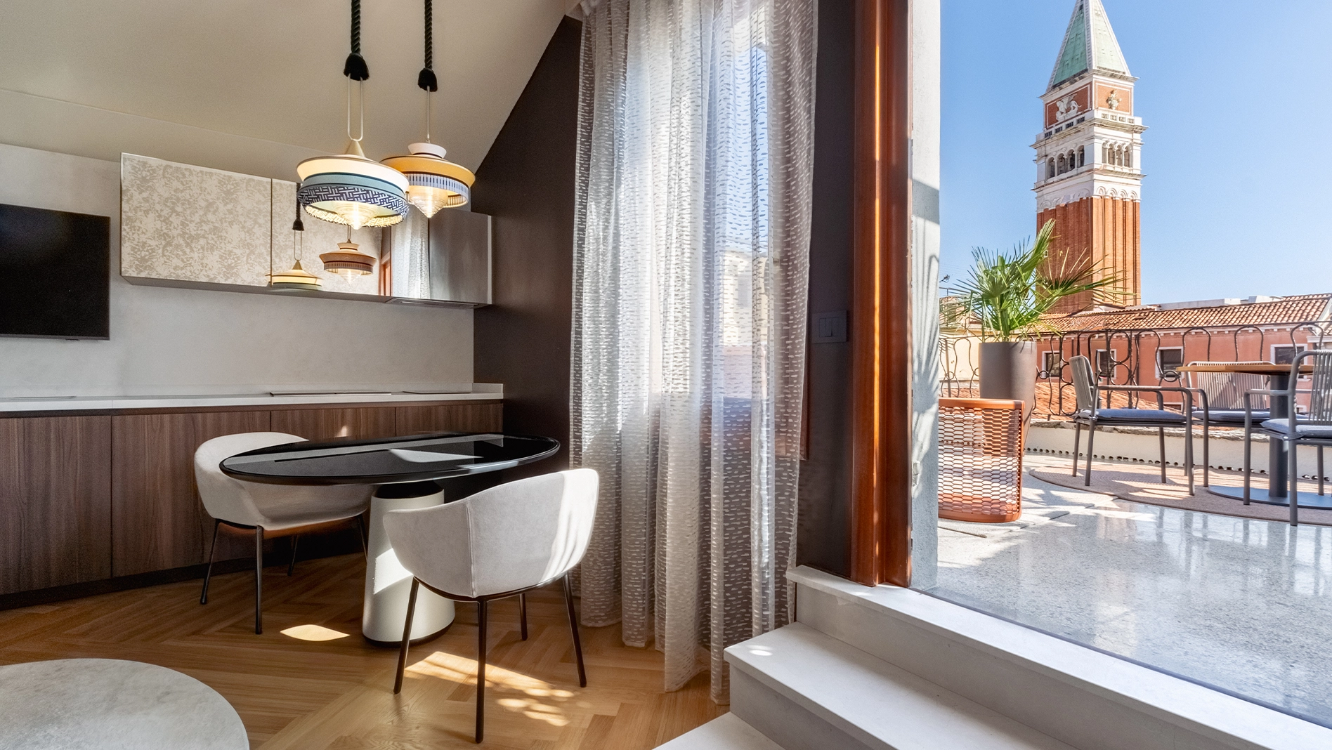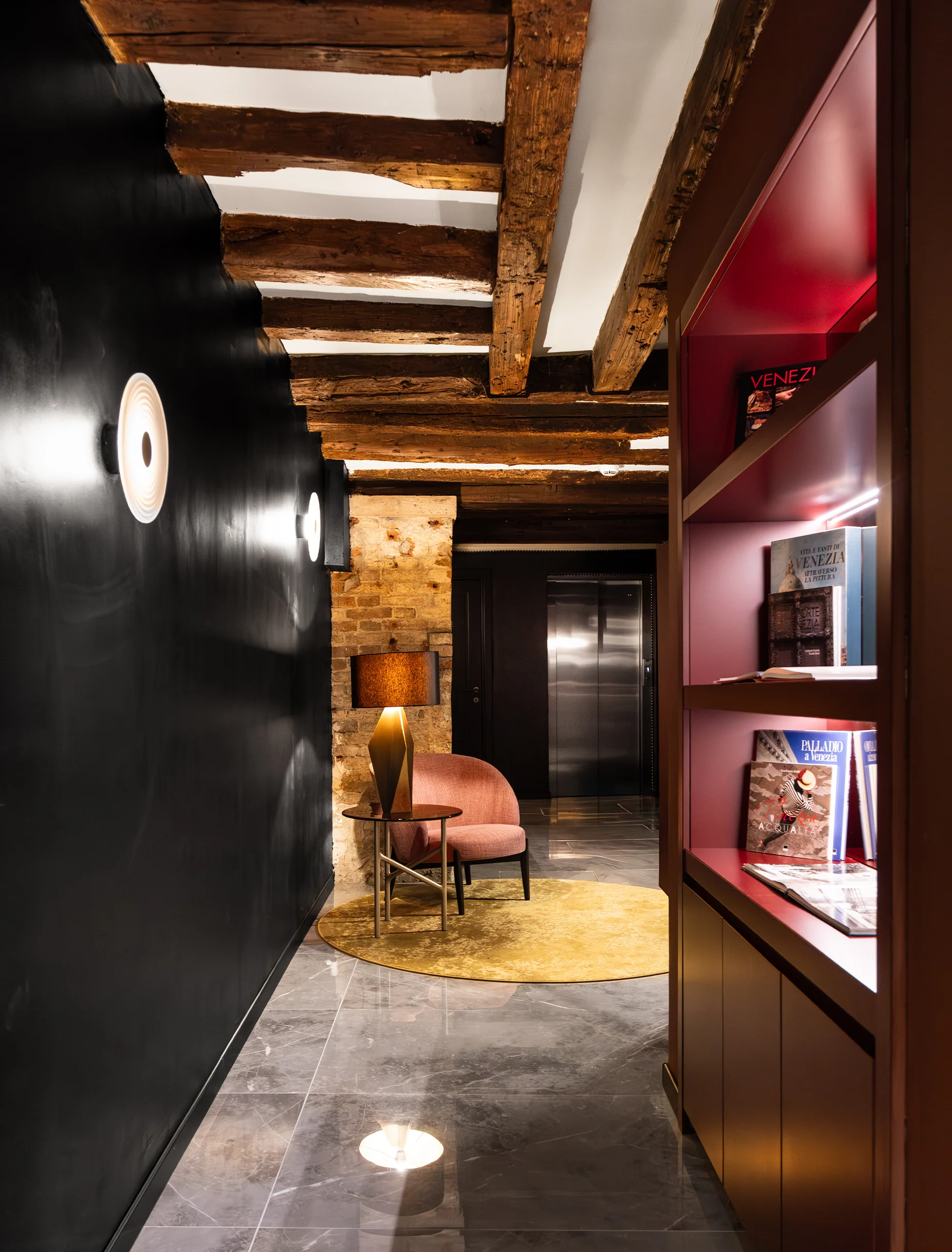 L’intervento intreccia con equilibrio la classicità veneziana e uno stile essenziale, restituendo nuova vita agli spazi senza tradirne l’anima. Materiali nobili e dettagli artigianali si fondono con la laguna, creando atmosfere sospese tra memoria e presente.